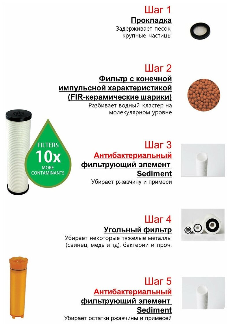 | Фильтрация и очистка | механический (примеси) / угольный (запах и вкус) / пестициды |