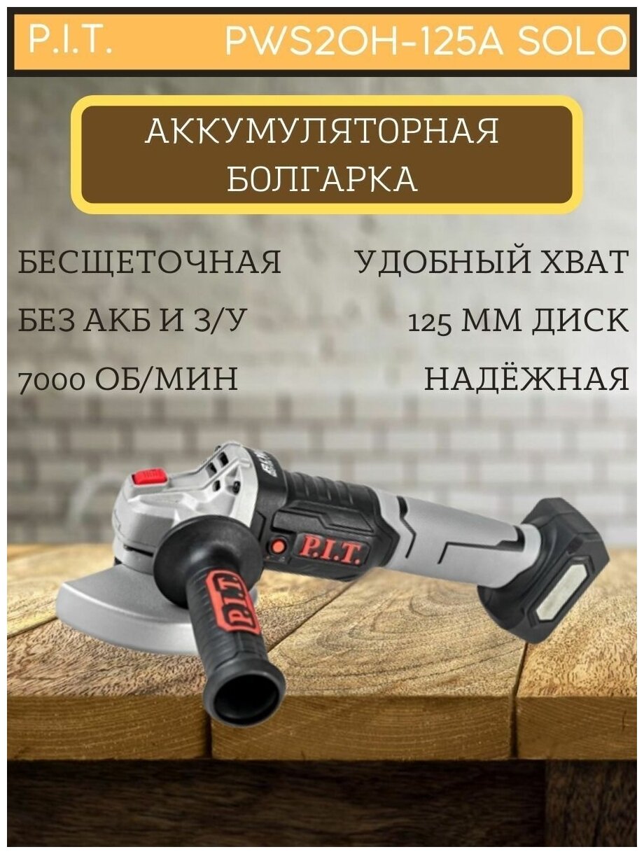 Шлифовальная машина P.I.T. Аккумуляторная Болгарка (УШМ) P.I.T. PWS20H-125A SOLO. Без АКБ и ЗУ!