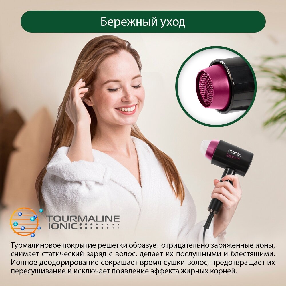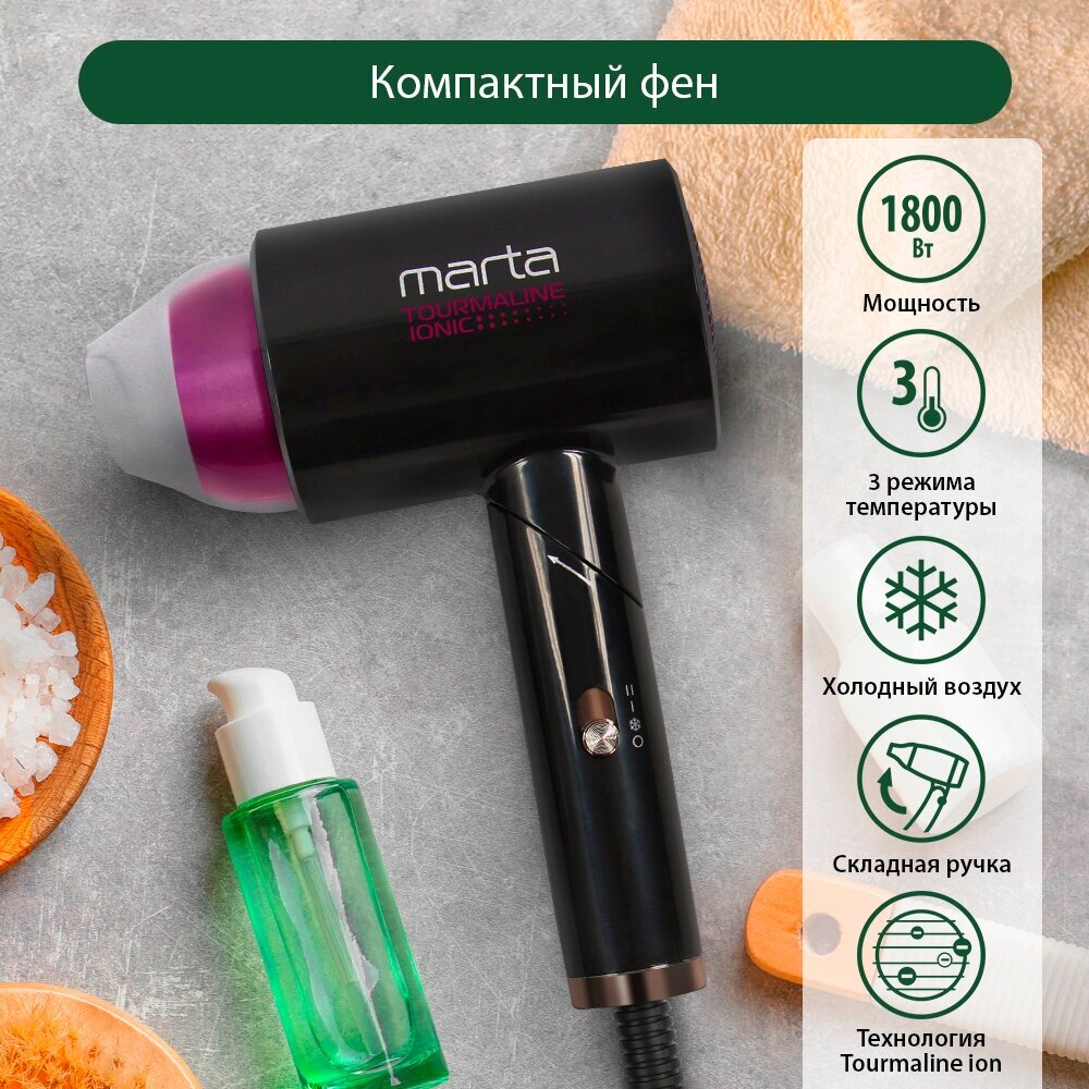Фен MARTA MT-1261 Технология tourmaline ionic черный коралл 965 ₽ Подробнее