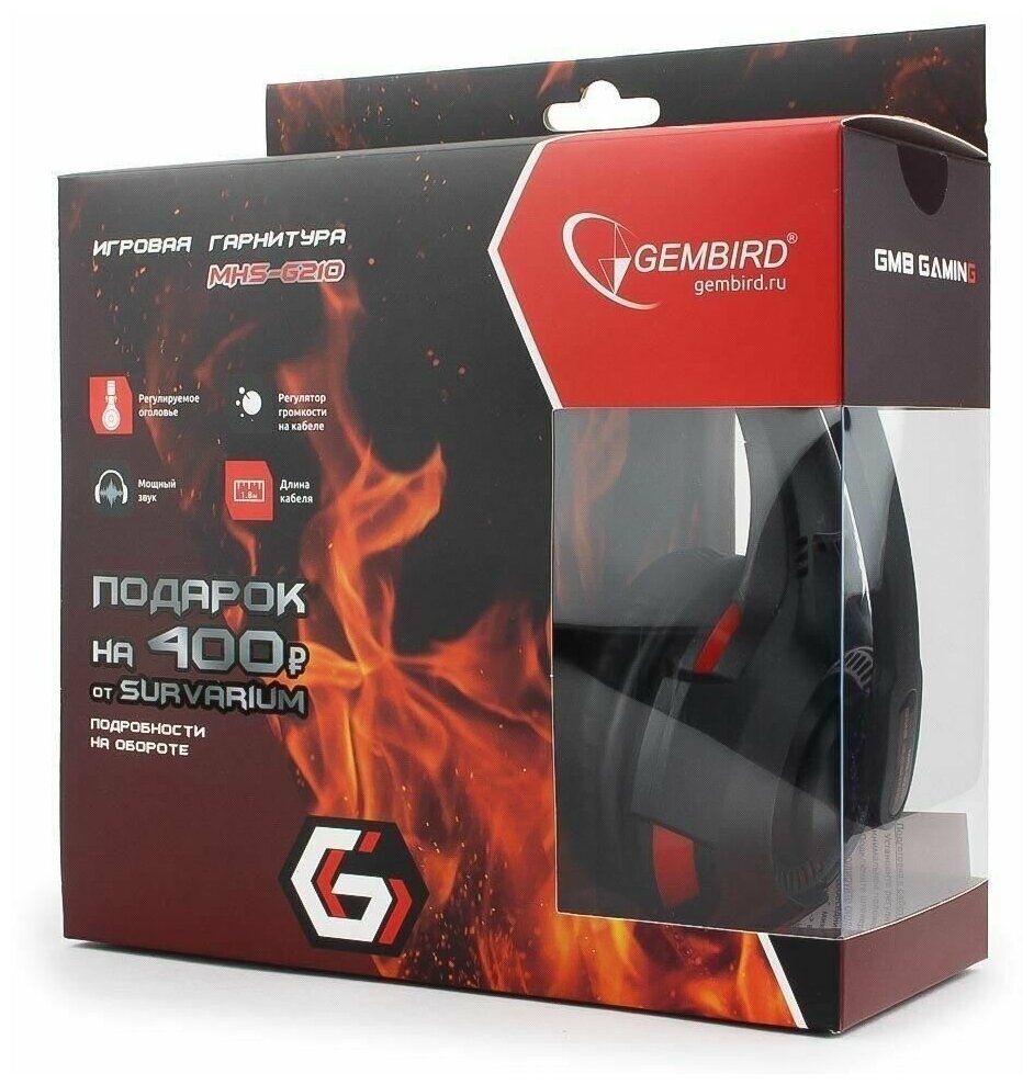 Gembird MHS-G210, код Survarium, черн/крас, рег громкости, каб 1.8м