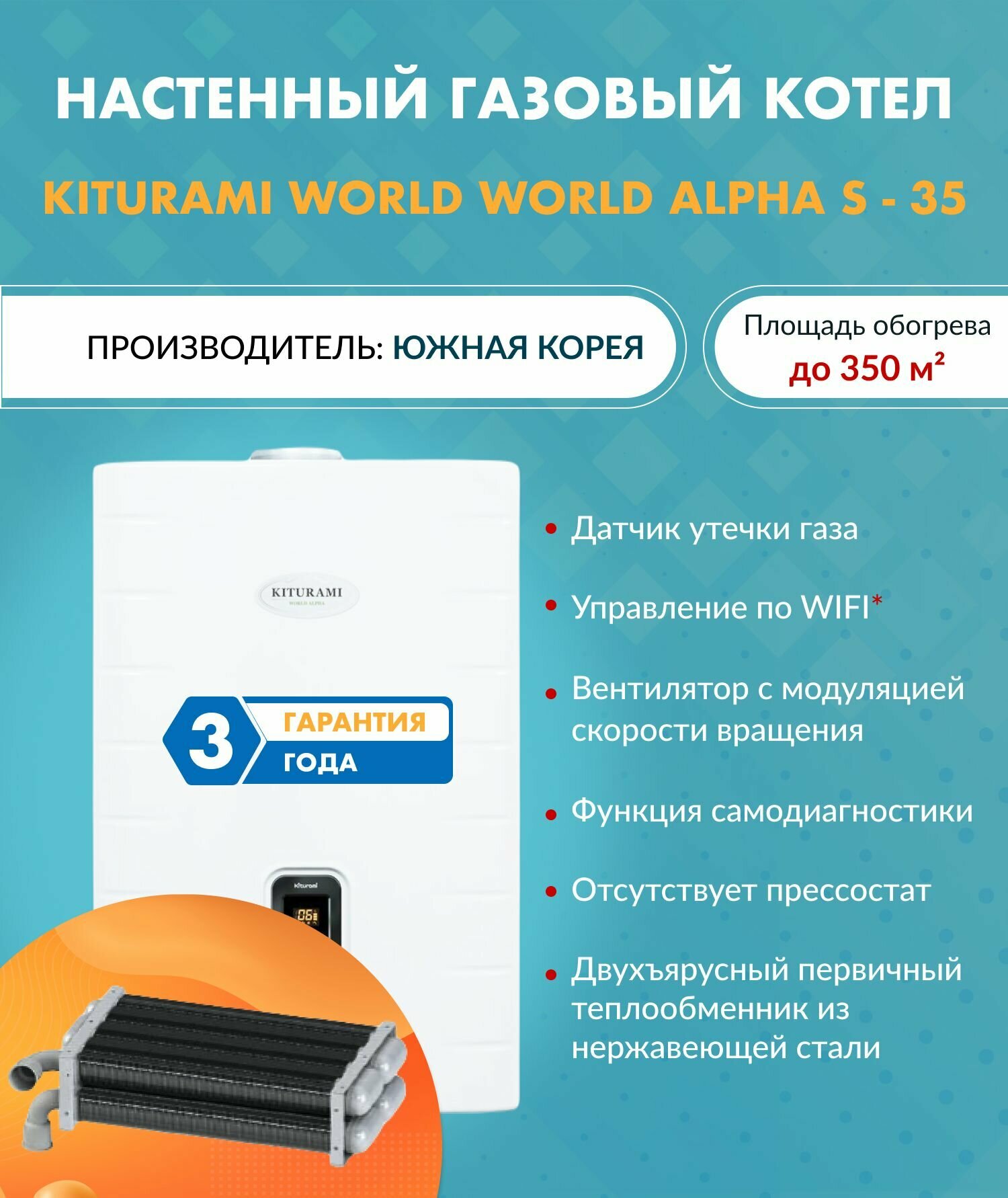 Котел газовый Kiturami World Alpha S-35 A21E220268 (Китурами) настенный конвекционный двухконтурный