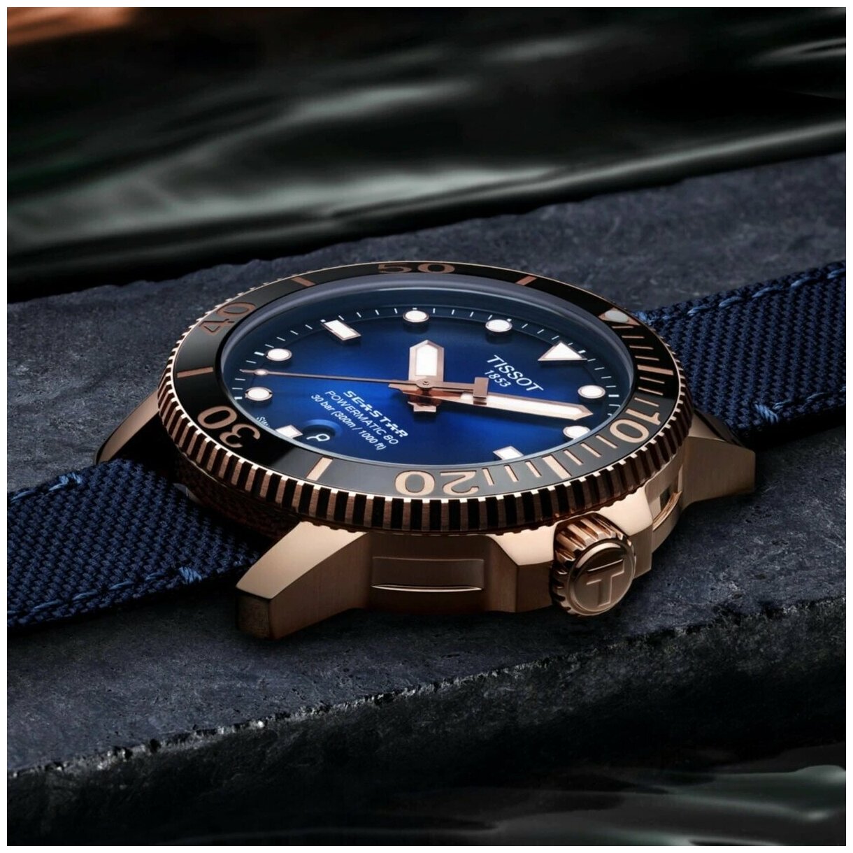 Лучшие цены. Часы TISSOT T120.407.37.041.00 из коллекции SEASTAR 1000 Механизм - Powermatic 80. Калибр - Калибр - 11 1/2"". 23 драгоценных камня в механизме. Керамический безель, благодаря которому внешний вид часов сохранится на долгие годы. PVD-покрытие розового золота. Тканевый ремешок. Стрелки и деления идут с покрытием Super-LumiNova®. Вес - 111г. Магазины в вашем городе.