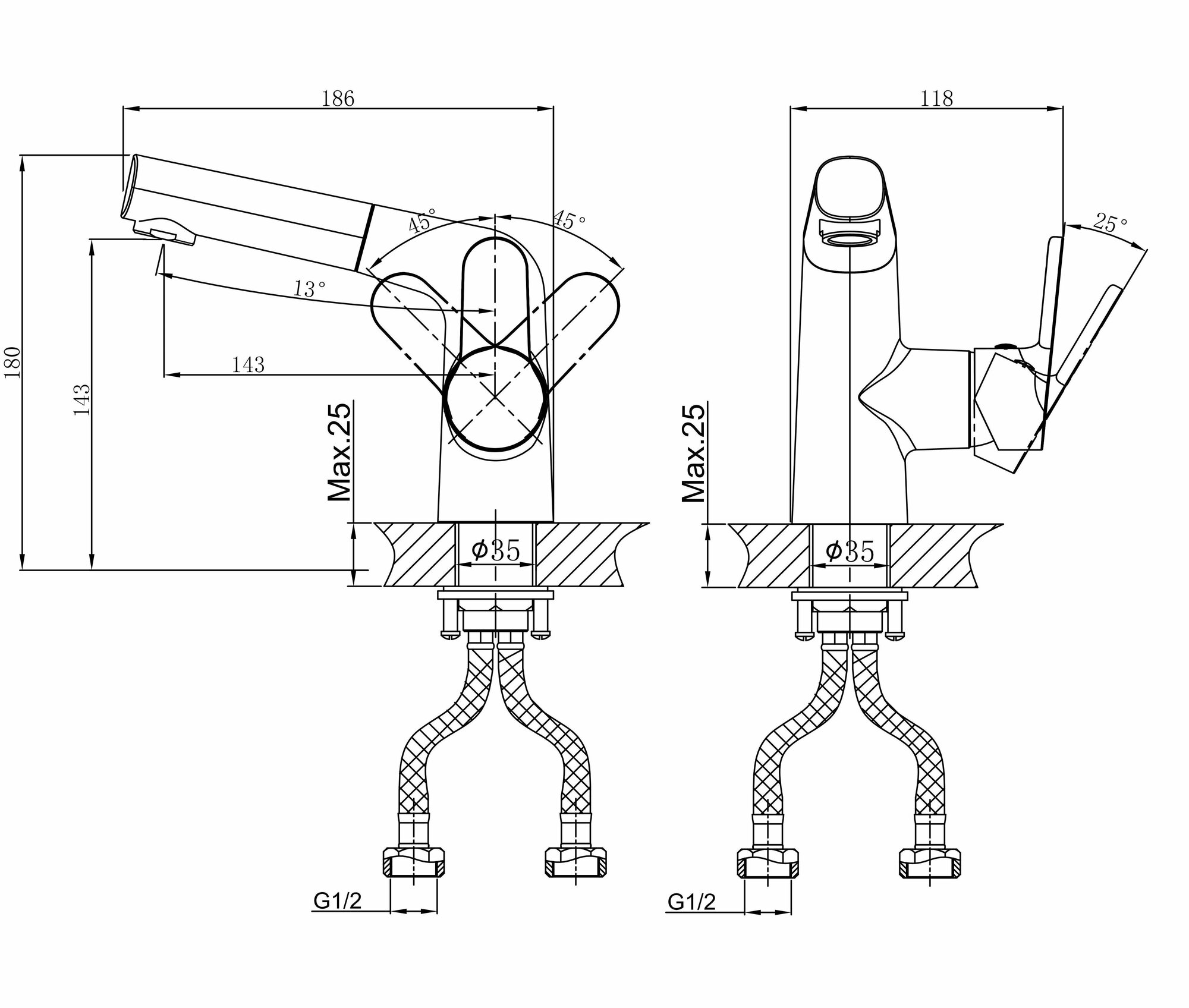 | Подвод воды | гибкий (G 1/2") |
