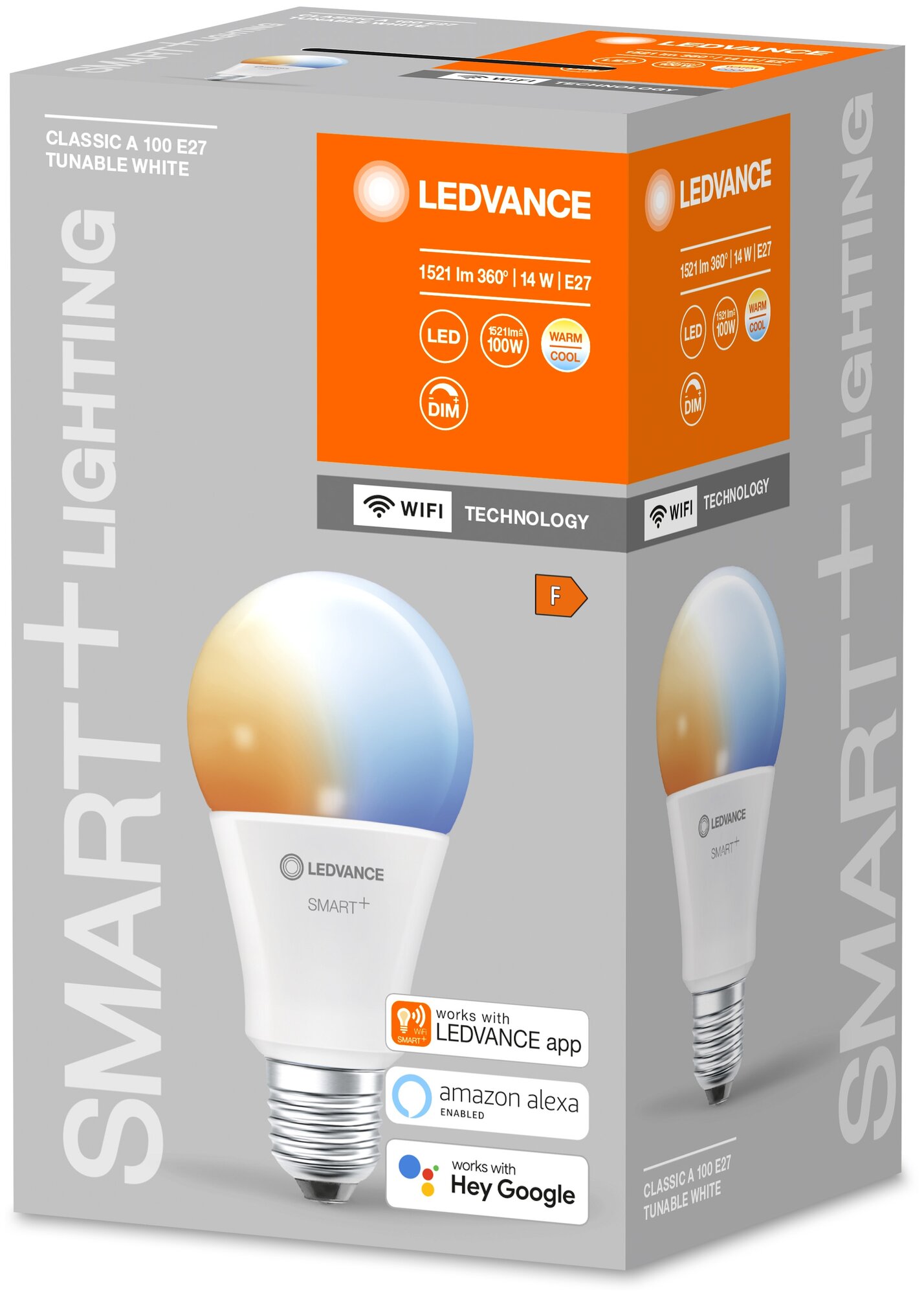 Лучшие цены. Умная лампа Ledvance SMART+ WiFi Classic Tunable White 14W 2700-6500K E27 (4058075485495)Что это такое? Умная лампа Ledvance SMART+ WiFi Classic Tunable White 14W 2700-6500K E27 работает с приложением Ledvance Smart + WiFi. Добавьте умное освещение в свой дом! Что оно может? Простое в использовании приложение легко настроить, с ним вы сможете управлять лампами не только из дома, но и удаленно. Магазины в вашем городе.