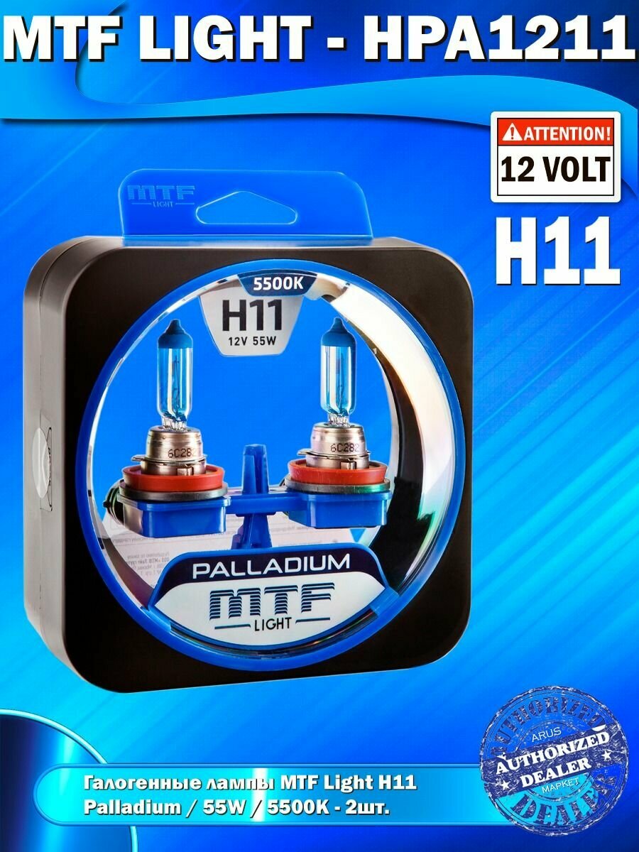 Галогенные автолампы MTF Light серия PALLADIUM H11, 12V, 55W, комплект 2 лампы