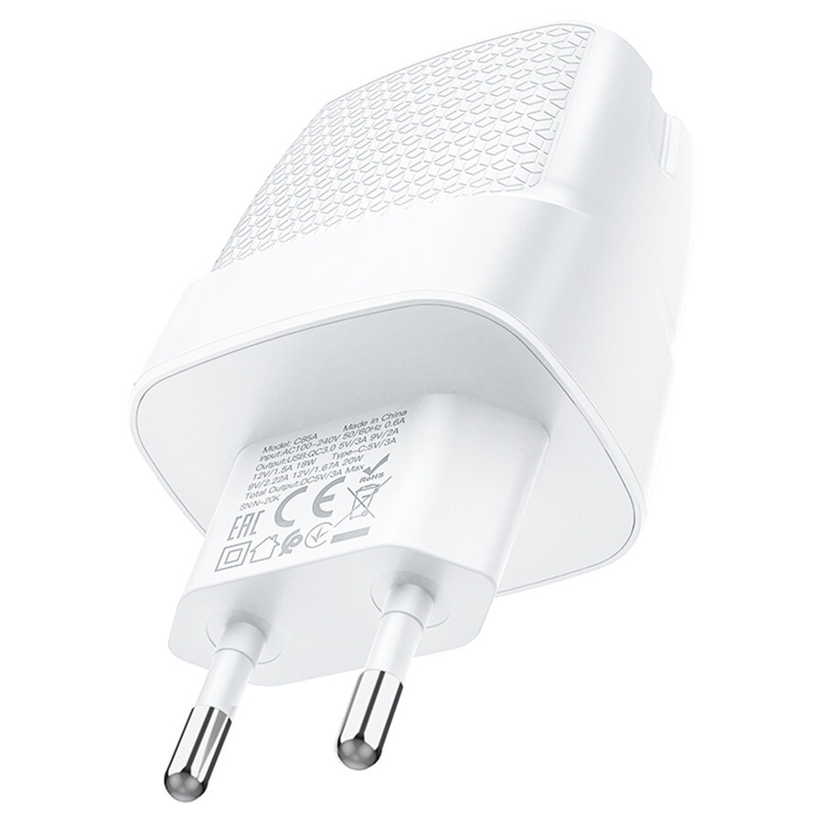 СЗУ, 1 USB 3.0 QC+1 PD 20W (C85A), HOCO, белый