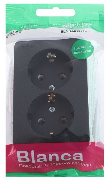 Розетки Розетка SYSTEME ELECTRIC (SCHNEIDER ELECTRIC) SCHNEIDER ELECTRIC BLANCA двойная с заземлением, без шторок, изол. пл., 16А, 250В, Антрацит, BLNRA010216