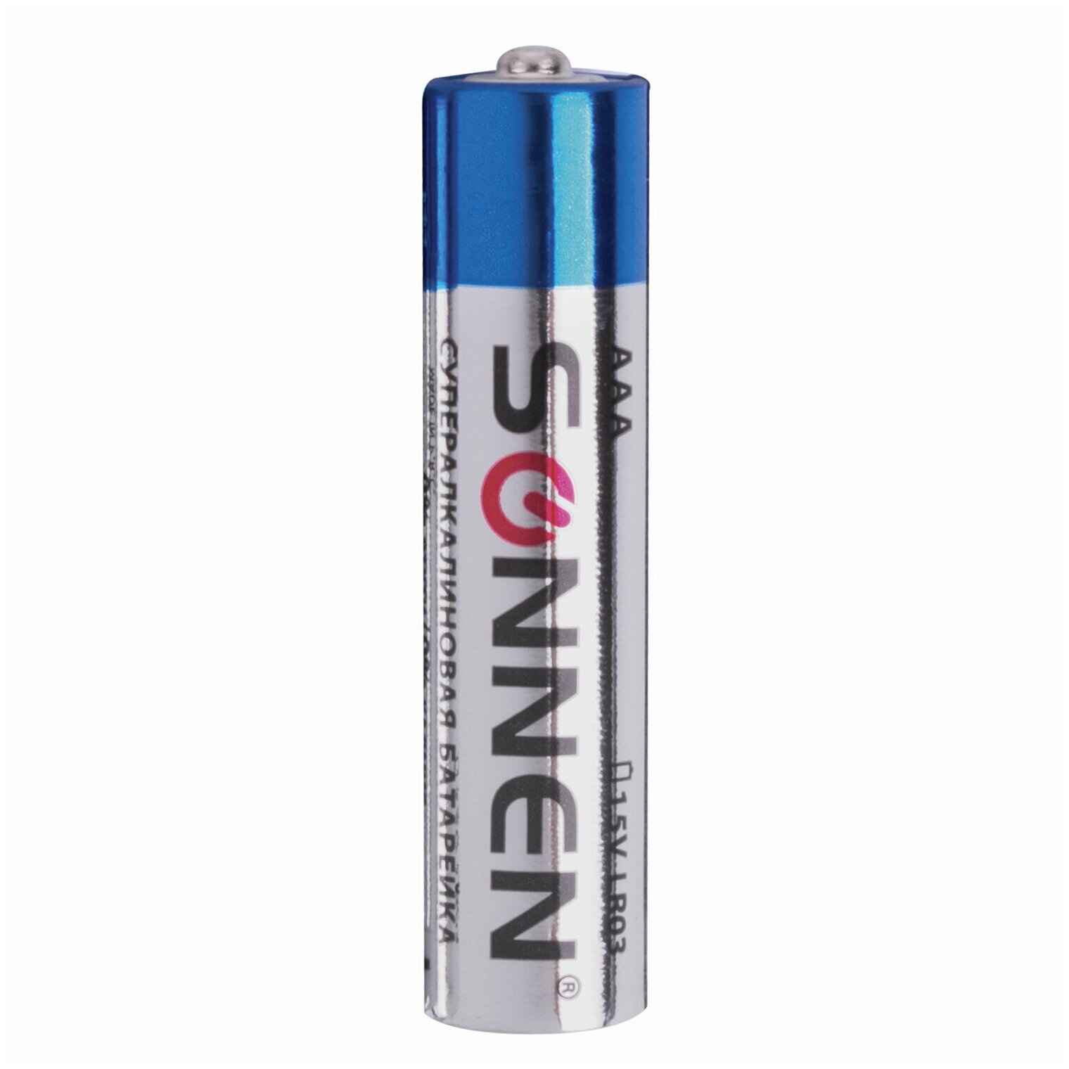 Батарейки комплект 10 шт., SONNEN Super Alkaline, AAA (LR03, 24А), алкалиновые, мизинчиковые, короб, 454232 В наборе: 1компл.