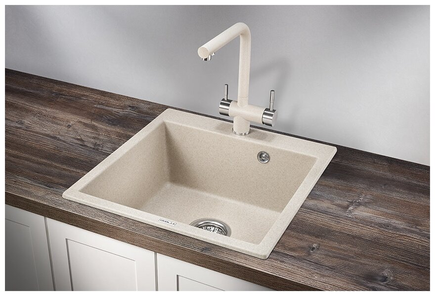 Мойка для кухни врезная кварц GRANULA 51x52x20 Кухонная раковина в комплекте с сифоном. Цвет бежевый