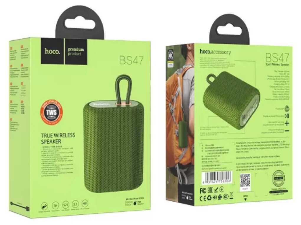 Портативная колонка HOCO BS47, зеленый, ткань