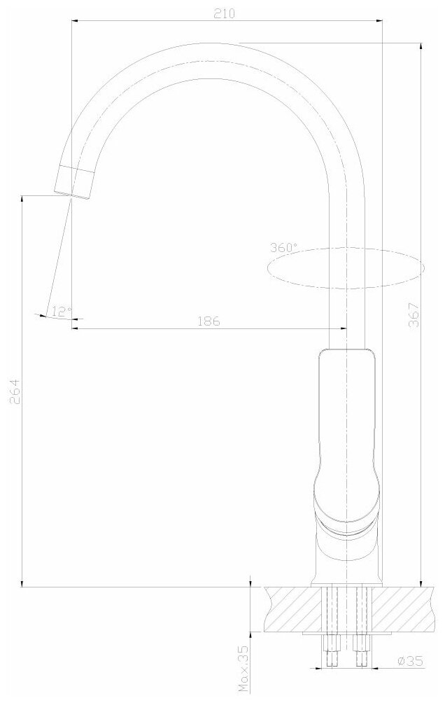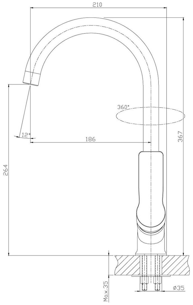 Лучшие цены. Характеристики Материал корпуса: латунь Тип смесителя: однорычажный Длина излива, мм: 210 Переключатель на фильтр: нет Покрытие: хром Поворотный излив: да Лейка: нет Встраиваемый: нет Диаметр картриджа , мм: 35 Запорный клапан: керамический картридж Выдвижной излив: нет Термостат: нет Аэратор: да Форма излива воды: традиционная Назначение: для кухни Размер крепления: G1/2 Диаметр отверстия в раковине, мм: 35 Цвет: сатин Излив: есть Стиль: классический Тип установки: настольный Высота смесителя, мм: 367. Магазины в вашем городе.