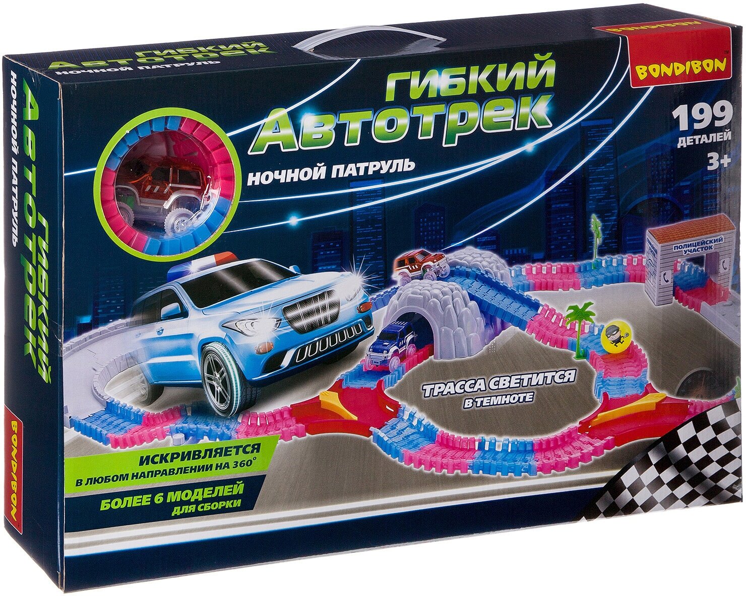 Гибкий автотрек Bondibon "Ночной патруль", светящаяся трасса и машинка, 199 деталей (ВВ2767)