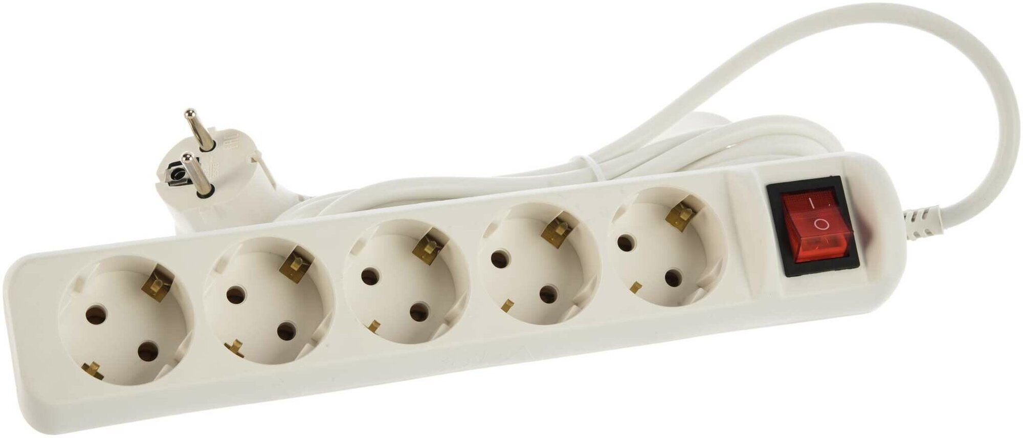 Удлинитель электрический Эра с заземл. и выкл. 5 розеток 3м ПВС 3x1 16А, Белый, U-5es-3m-3x1 (Б0028382)