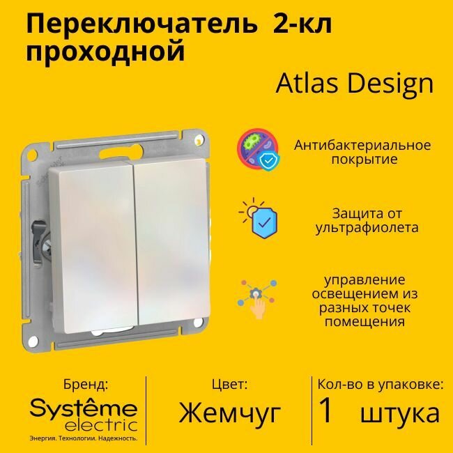 Переключатель 2-кл. 10А, жемчуг ATLAS DESIGN