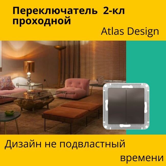 Выключатели Переключатель проходной Systeme Electric Atlas Design 2-клавишный, 10А, 10 AX, Мокко - 10 шт.