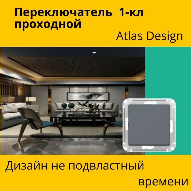 Выключатели Переключатель проходной Systeme Electric Atlas Design 1-клавишный, 10А, 10 AX, Грифель - 2 шт.