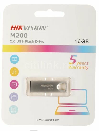 USB-флешки Флеш Диск Hikvision 16Gb M200 Hs-usb-m200/16g USB2.0 серебристый