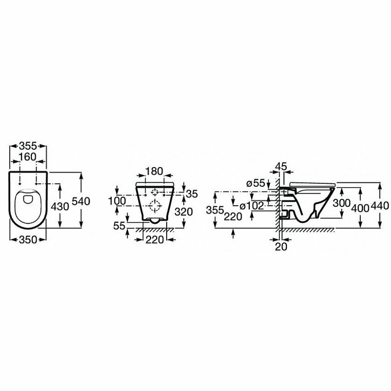Лучшие цены. Комплект унитаза с инсталляцией Roca The Gap Round Pack Rimless 893105000. Характеристики: Унитаз с сиденьем Микролифт: Цвет: белый. Материал: фарфор. Габариты (ШxВxГ): 355х340х540 мм. Тип чаши: безободковая. Форма: овальная. Направление выпуска: горизонтальное (в стену). Тип смыва: душевой (круговой смыв). Монтаж: подвесной. Сиденье из Supralit с плавным опусканием крышки (микролифт), быстросъемное. Инсталляция: Габариты (ШхВxГ): 547x1125х200 мм. Цвет: черный. Материал: сталь. Магазины в вашем городе.