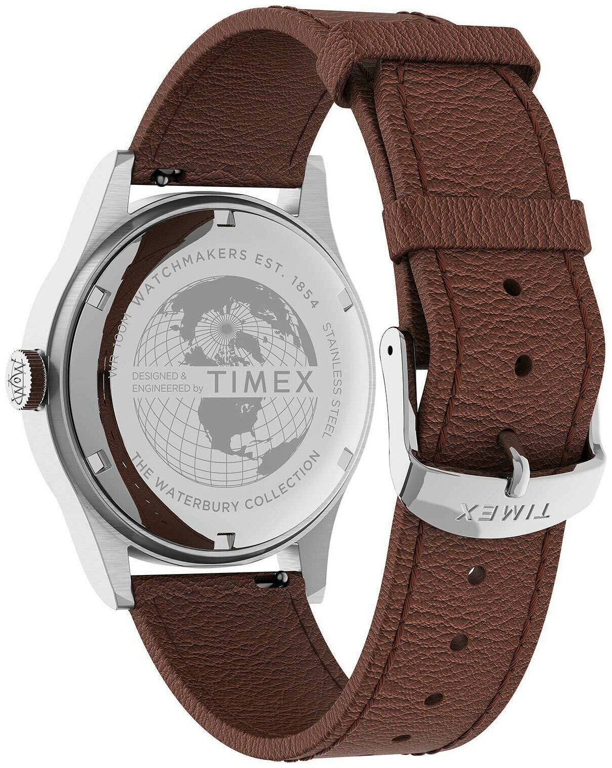 Лучшие цены. Выразительные часы станут отправной точкой стильного мужского образа. Waterbury Traditional. Коллекция посвящена городу Waterbury, где в 1854 году была основана компания Timex. Метки в виде арабских цифр. Окошко даты и дня недели. Ремешок с классической застежкой и системой быстрой замены. Магазины в вашем городе.