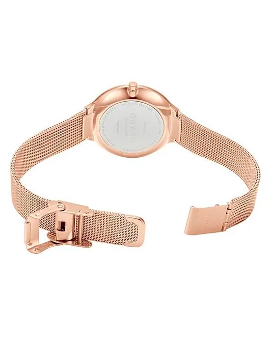 Лучшие цены. Женские кварцевые часы. Центральные часовая и минутная стрелки. Белый циферблат. Круглый корпус выполнен из полированной нержавеющей стали с IP покрытием цвета розового золота. Диаметр корпуса составляет 32 мм, толщина 5 мм. Стальной браслет с покрытием выполнен в технике миланского плетения, раскладная застежка. Устойчивое к возникновению царапин сапфировое стекло. Водостойкость WR 30 (брызги). Магазины в вашем городе.