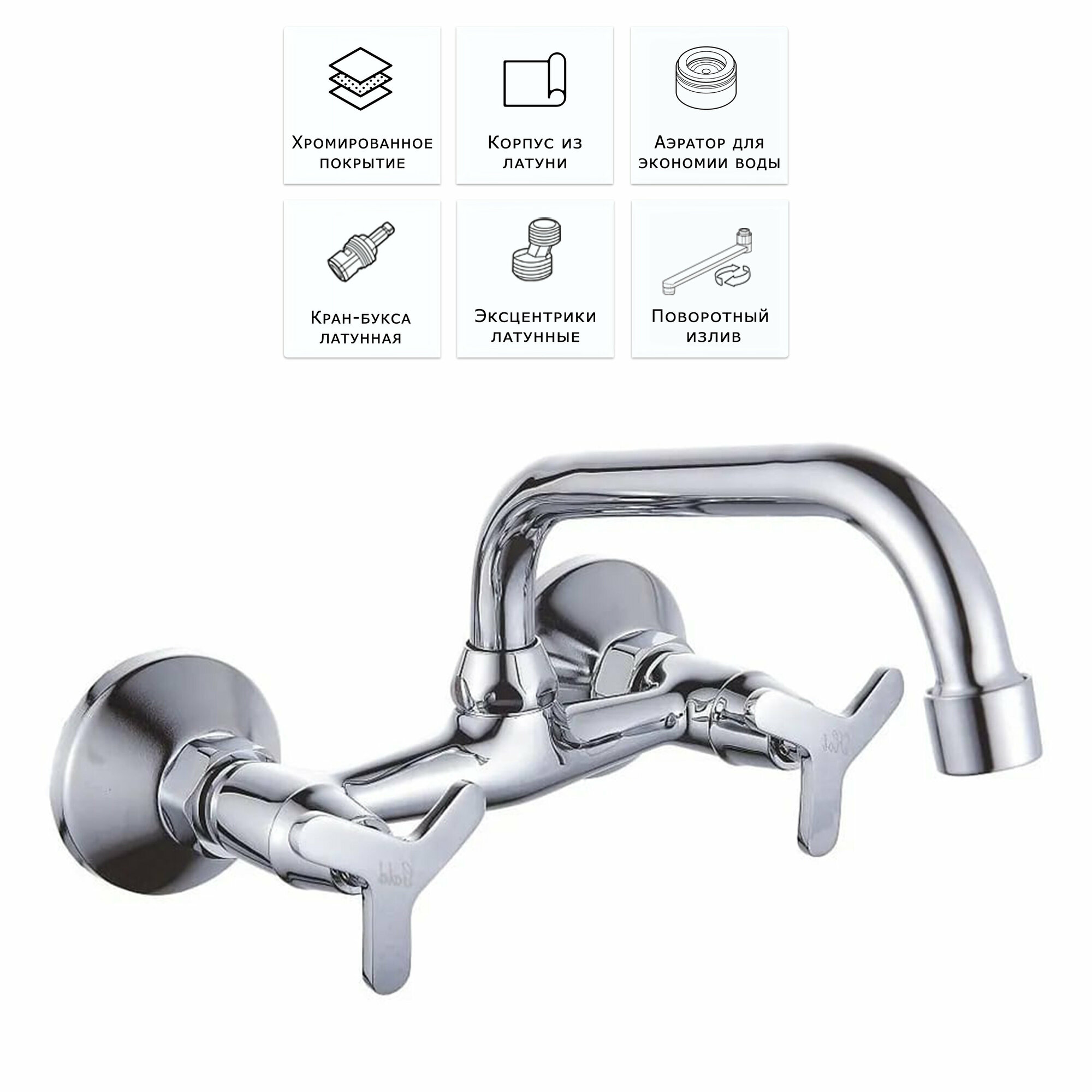 Смесители Bach / Смеситель для ванны и кухни / Поворотный излив / Управление вентильное / Код 13027