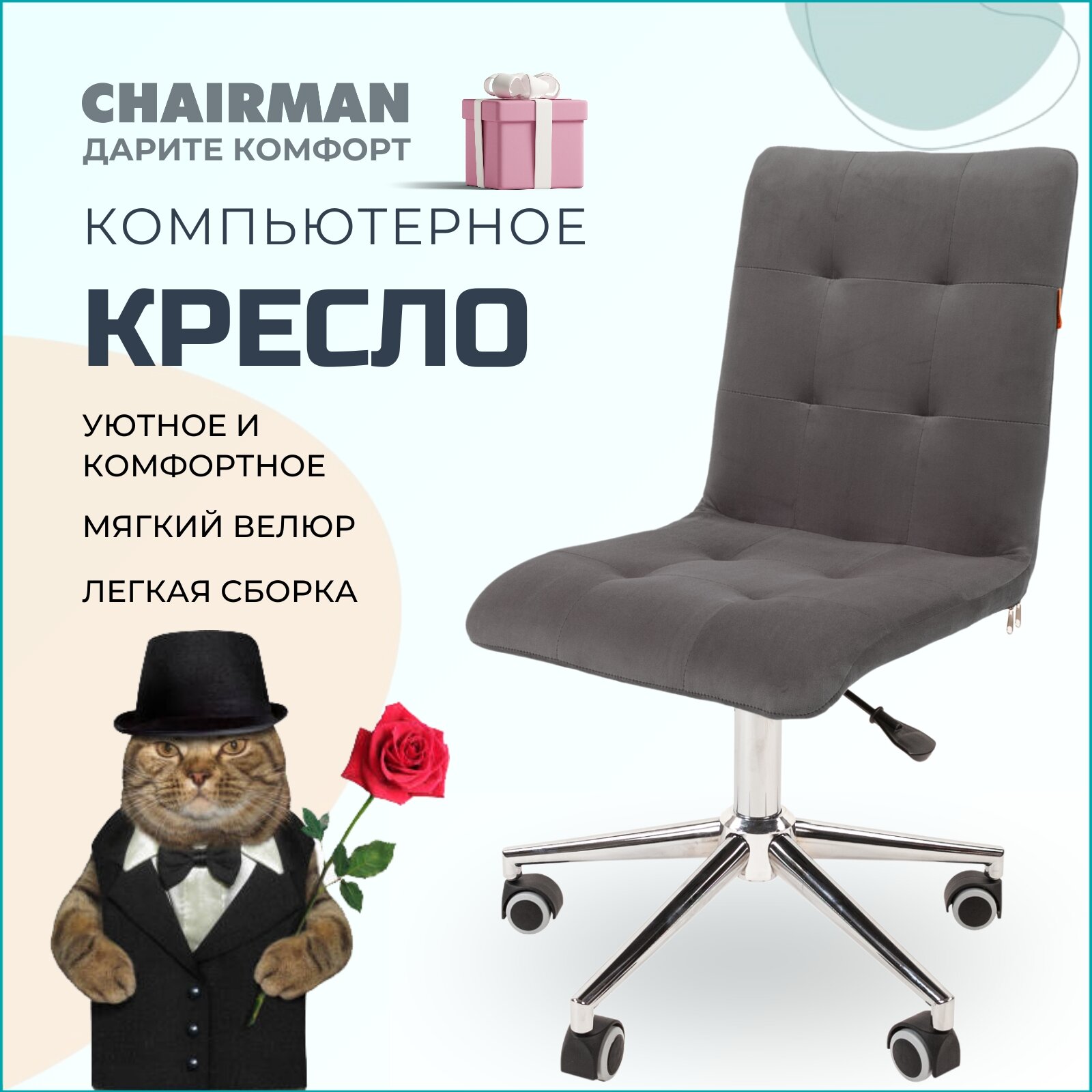 Компьютерные кресла Компьютерное кресло CHAIRMAN 030 хром, без подлокотников, велюр, серый
