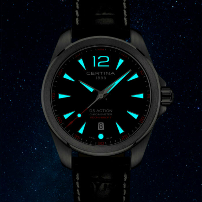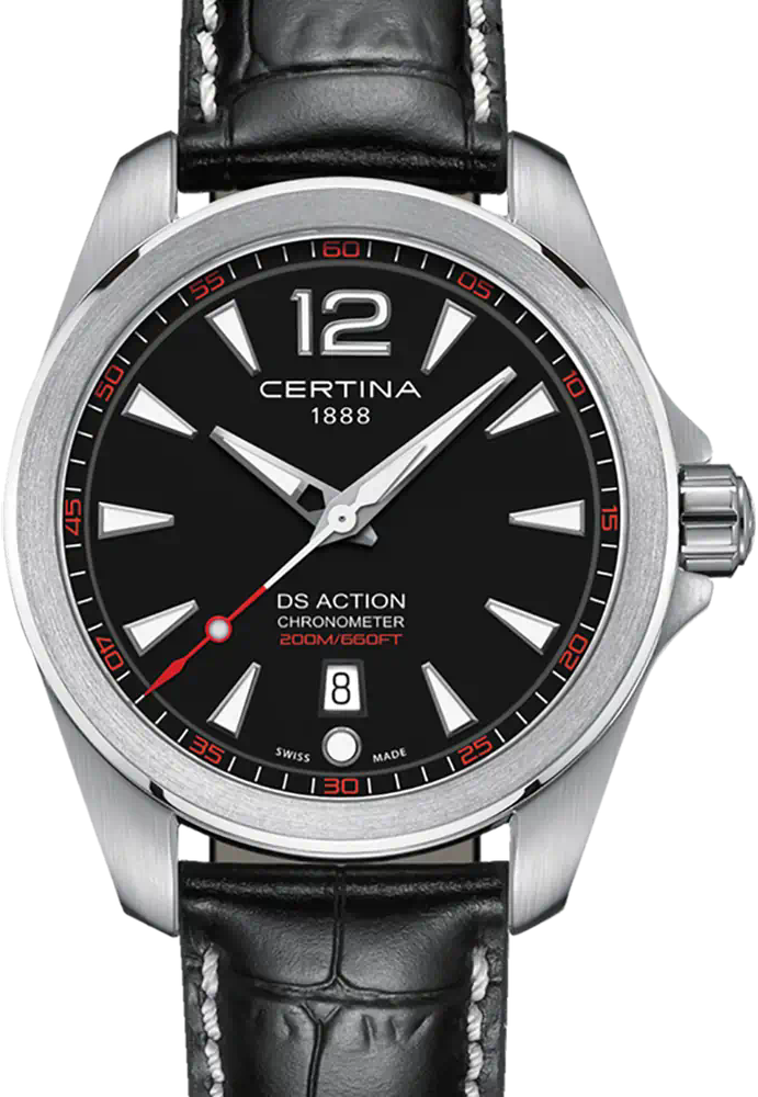 Лучшие цены. Certina DS Action Gent Спортивная мужская модель. Индикация часов, минут и секунд центральными стрелками. Люминесцентное покрытие на стрелках и разметке. Хронометр C.O.S.C. Магазины в вашем городе.