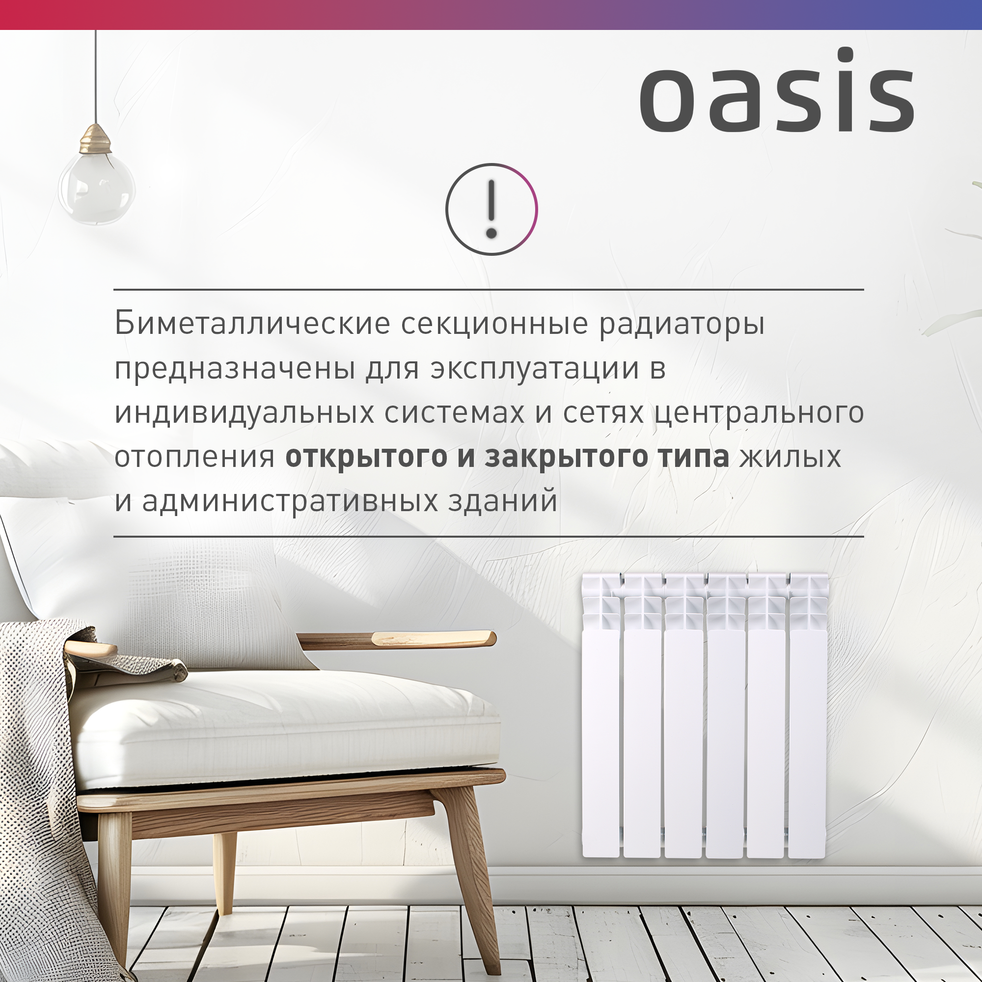 Биметаллический радиатор Oasis ECO 500/80 5 секций, 760 Вт, Россия