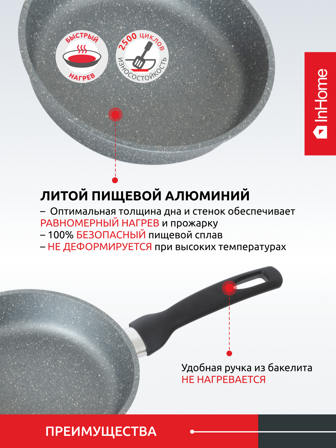 Литая сковорода с антипригарным покрытием InHome, IN18/MR0 1 232 ₽ Подробнее