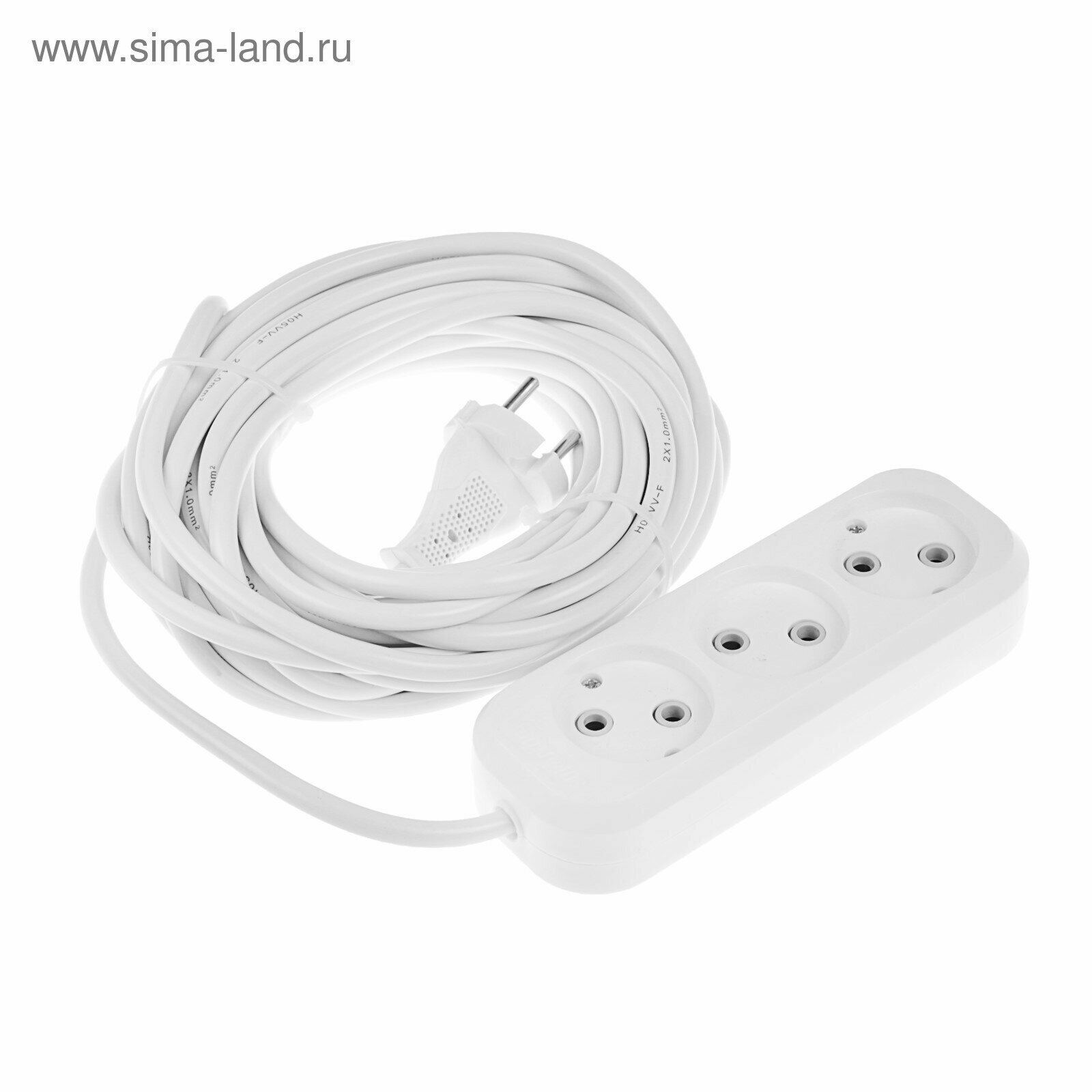 Удлинитель 3 розетки, 5 м, 6 А, 1300 Вт, ШВВП 2х0.5 мм2, без з/к, белый 5350219