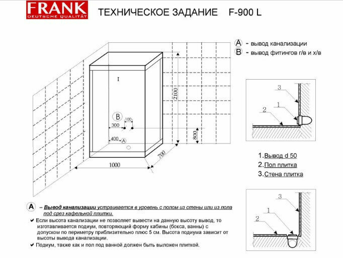 Душевая кабина Frank F-900L 100х70 64 000 ₽ Подробнее