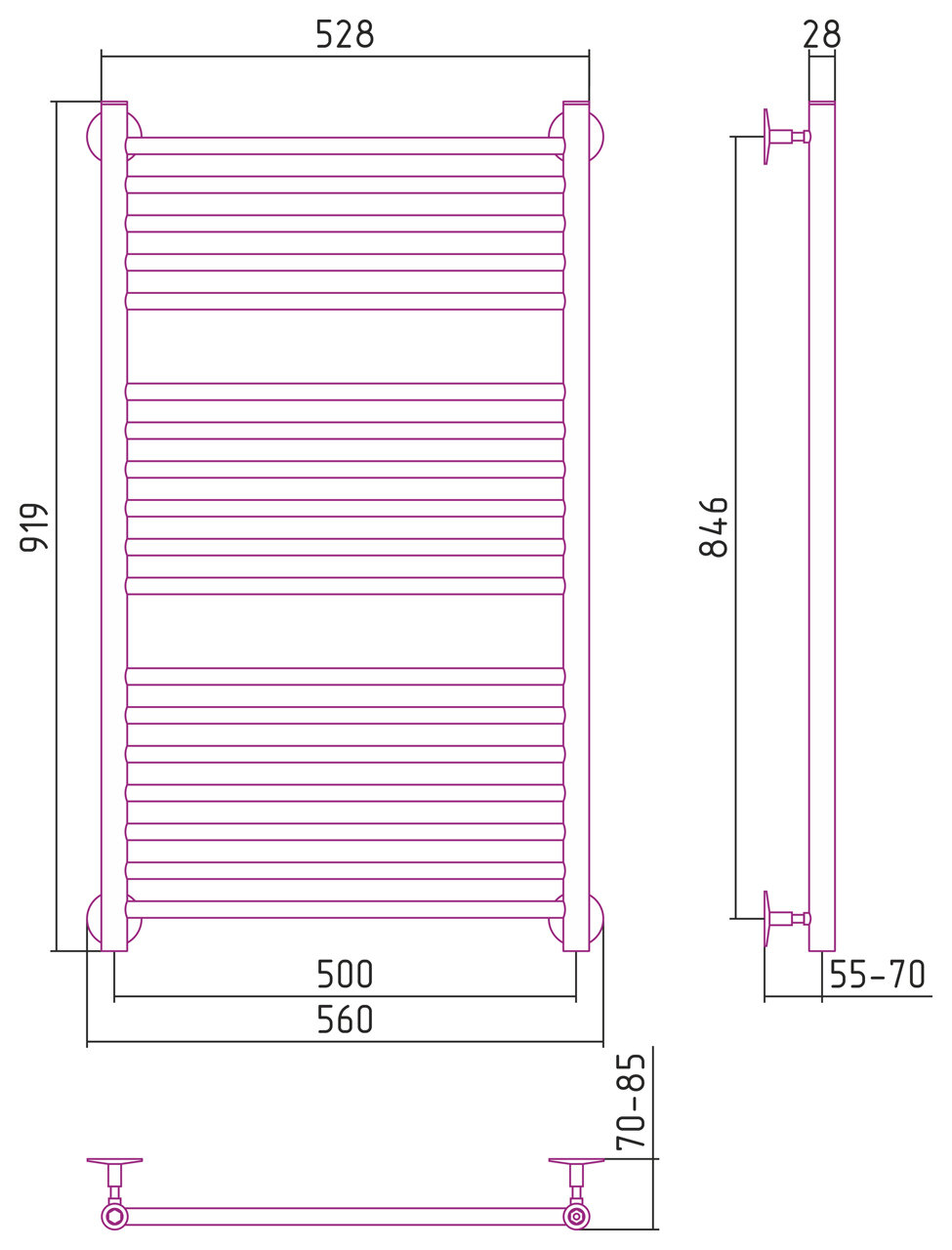 Полотенцесушители Полотенцесушитель водяной Стилье Универсал-53 1000х500 (5+6+7) П 18