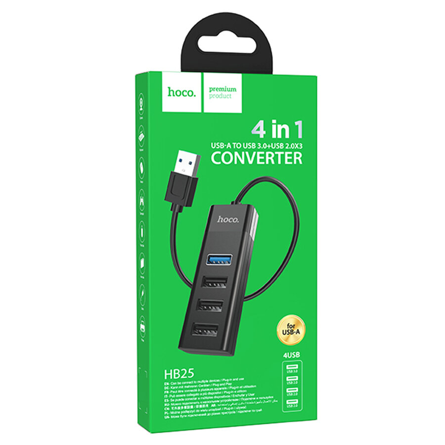 HOCO HB25 конвертер HUB 4 in 1, Type-C to USB3.0+USB2.0x3, Plug & Play, Черный