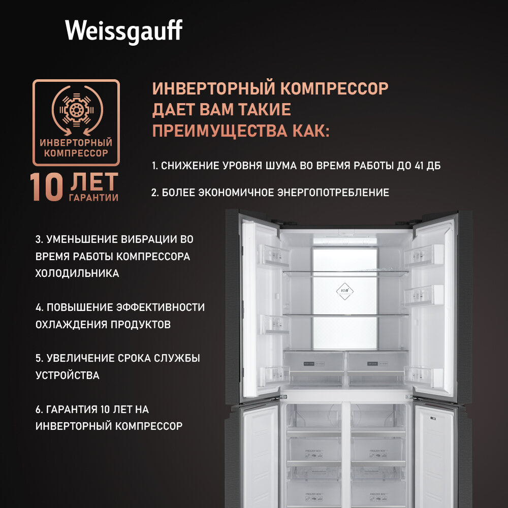 Отдельностоящий холодильник с инвертором Weissgauff WCD 450 XB NoFrost Inverter 79 990 ₽ Подробнее