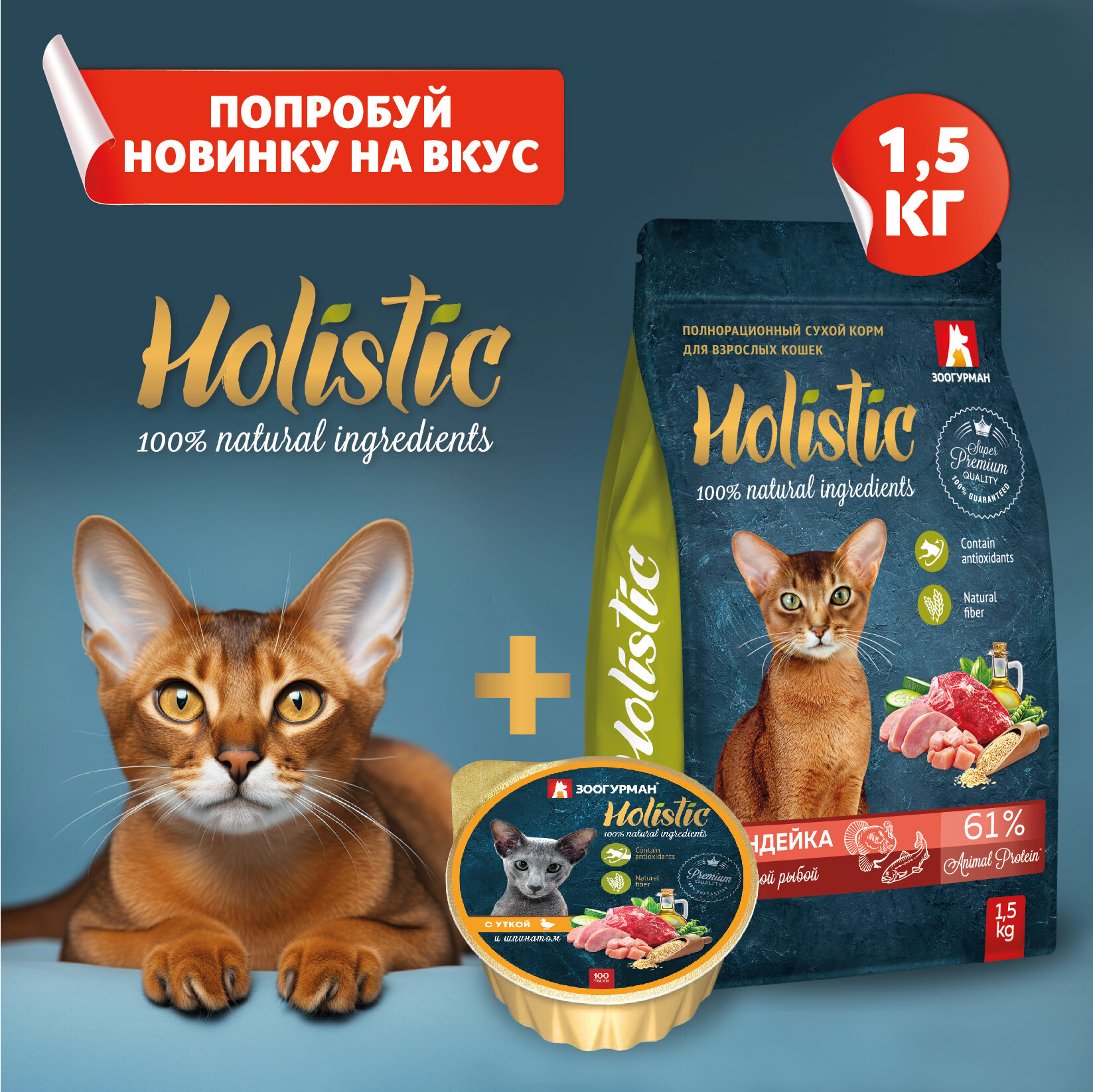Зоогурман Holistic влажный корм для кошек, паштет с индейкой и цукини, в ламистерах - 100 г х 20 шт
