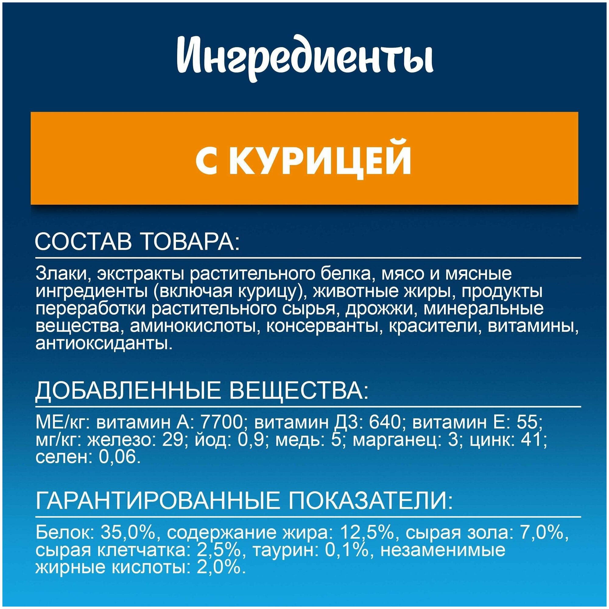 | Ингредиенты | мясо и субпродукты (4% курицы), крупы |