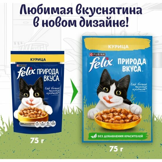 Корм для кошек Влажный корм для взрослых кошек Felix Природа вкуса курица 75 г x 26 шт