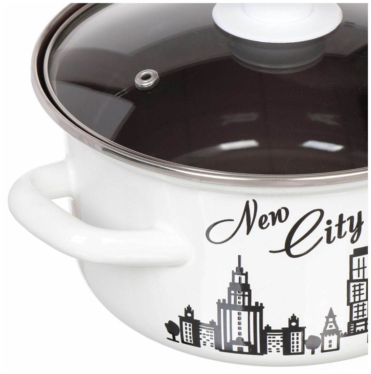Набор кастрюль «Новый город» 3 предмета: 1 5 л 2 3 л 3 л стеклянные крышки индукция цвет белый