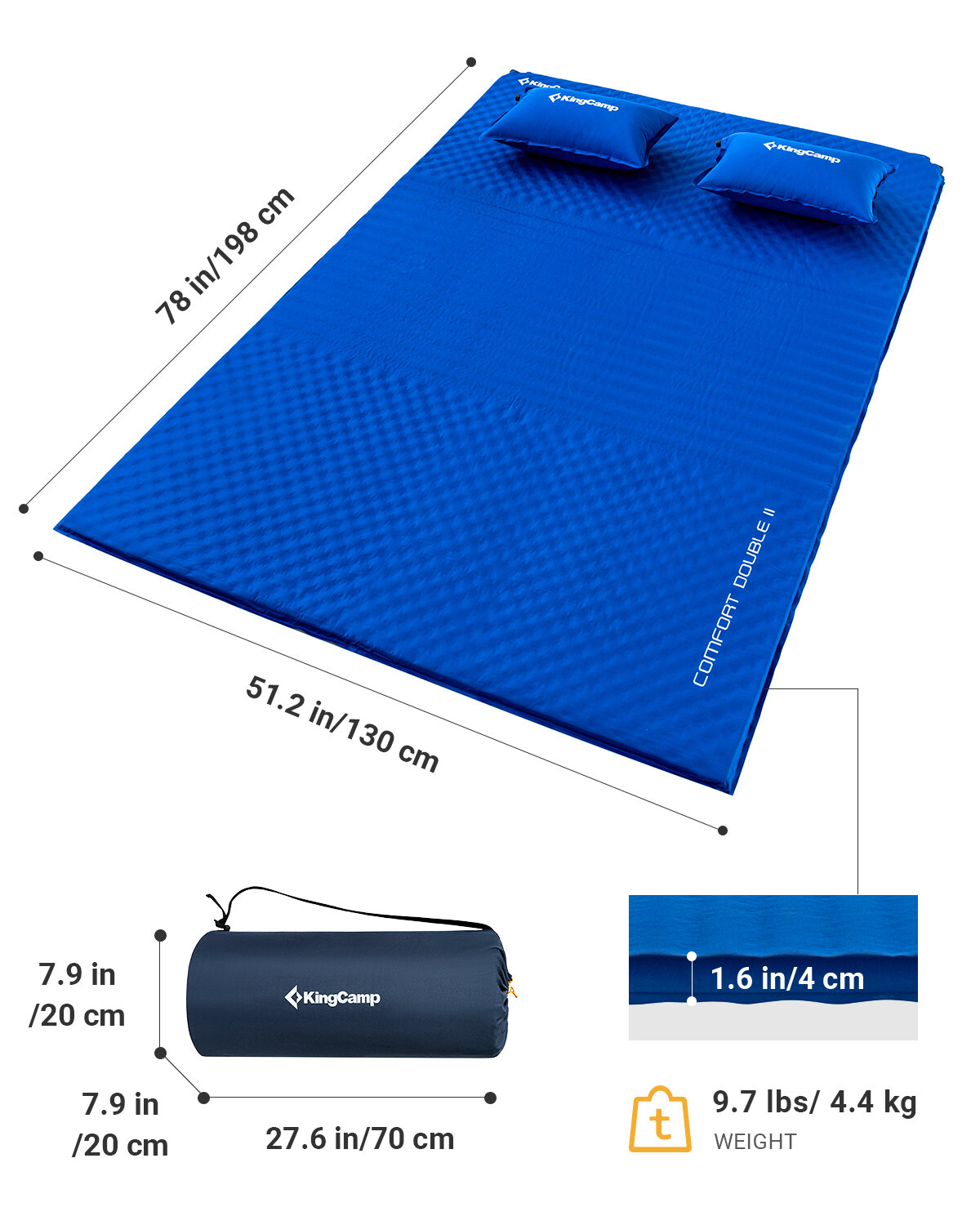 Коврик cамонадувающийся Kingcamp 3594 Comfort Double 198х130х4
