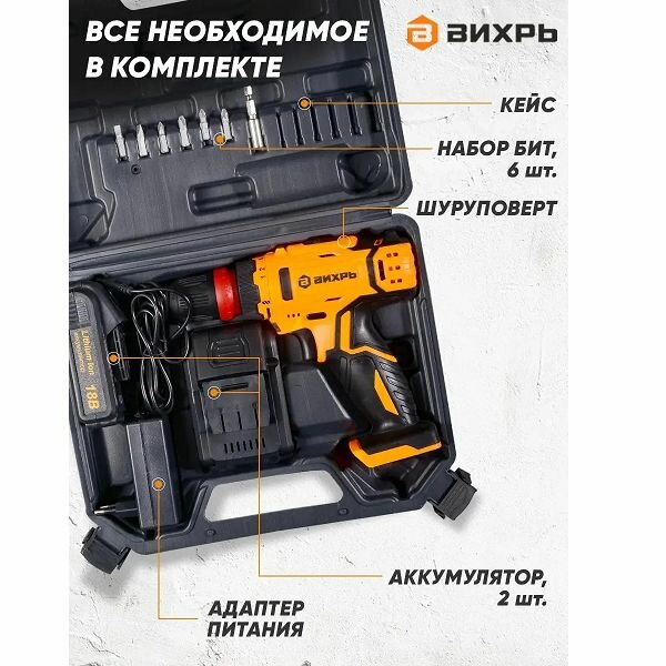 Дрель/шуруповерт Дрель-шуруповерт аккумуляторная Вихрь ДА-18Л-2КC (2,0 А/ч), 72/14/34