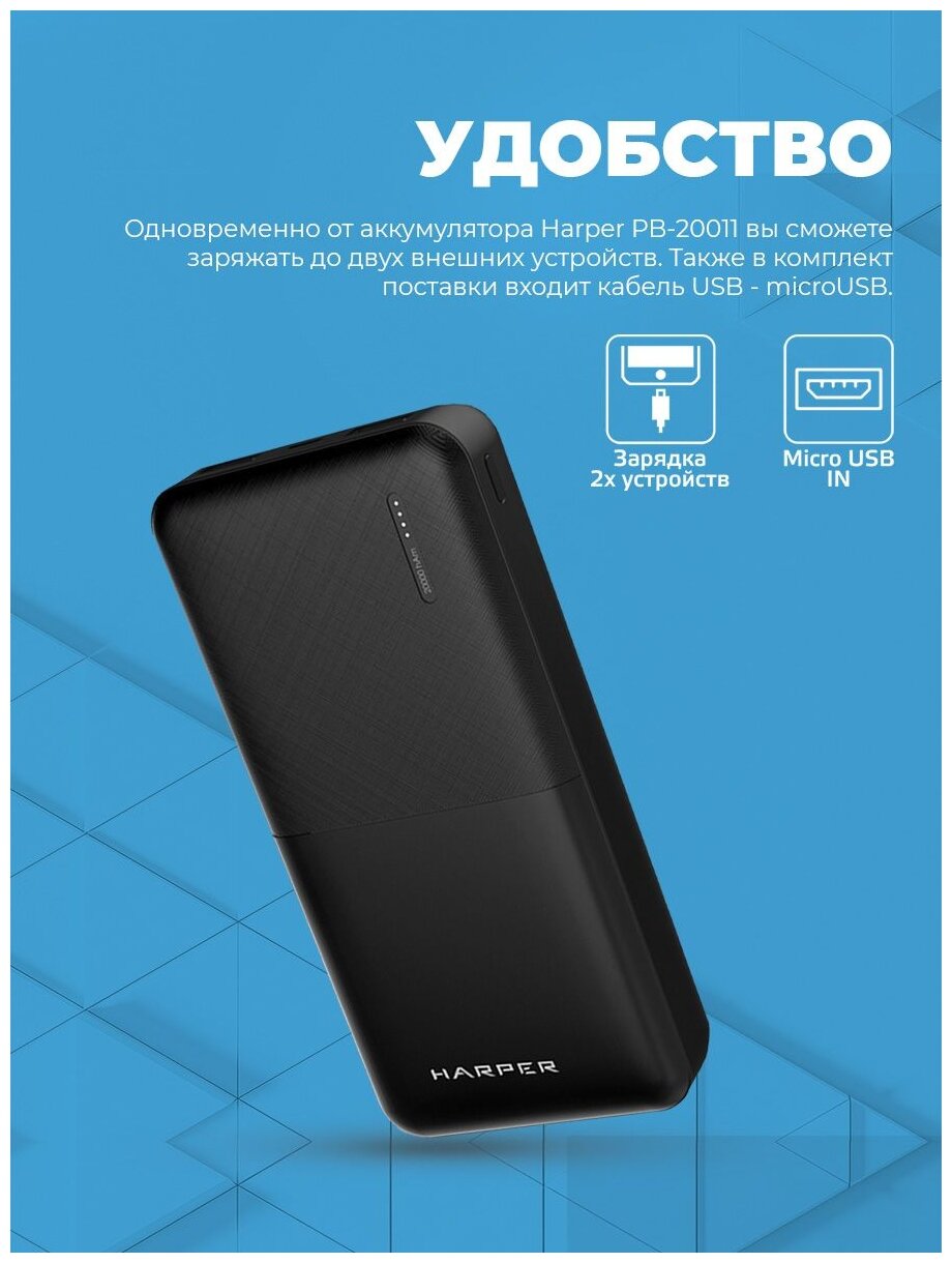 Powerbank Портативный аккумулятор HARPER PB-20011, черный, упаковка: коробка