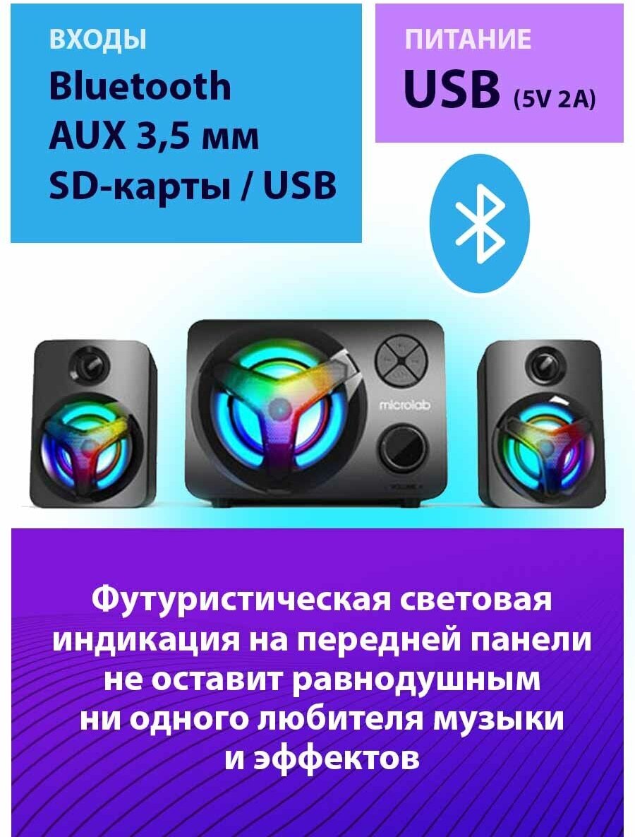 Колонки 2.1 Microlab U210 Bluetooth черный (U210) (U210 )