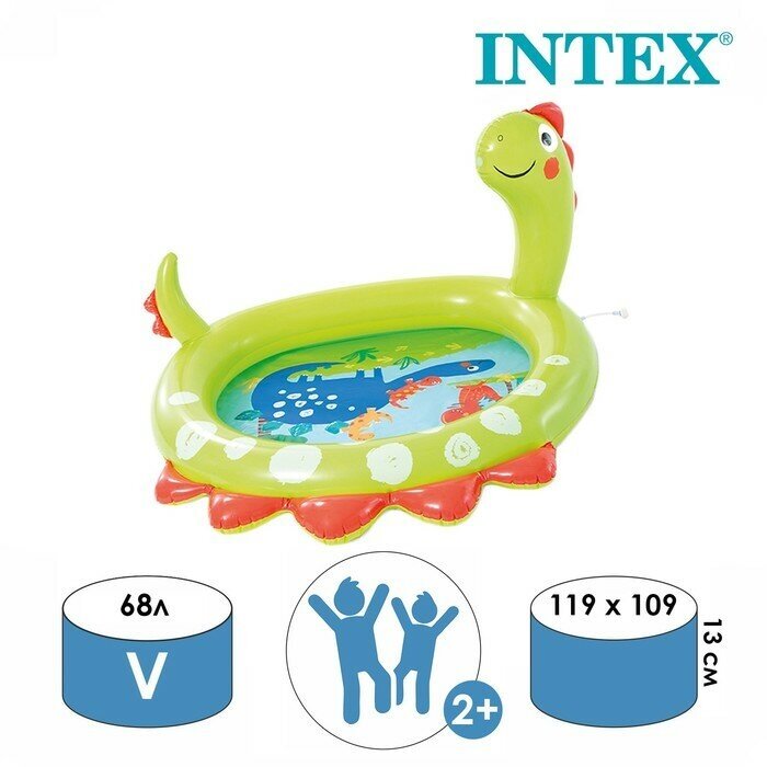 Бассейн надувной Intex, 119х109х66 см, Динозавр, 58437NP, 68 л, от 2 лет, с распылителем