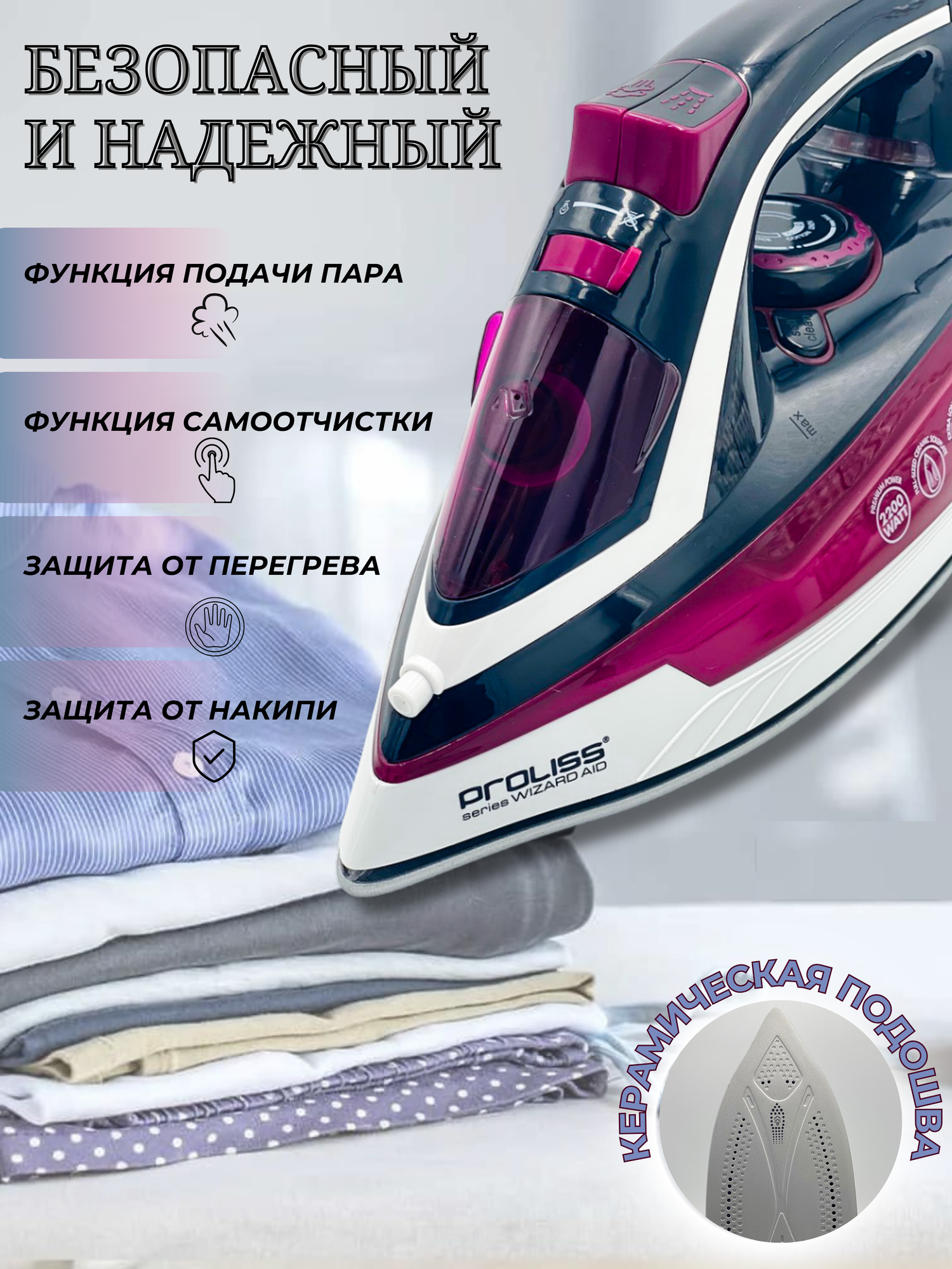 Лучшие цены. Название товара: Мощный утюг Proliss паровой, самоочищающийся, 2200 вт, черный, бордовый, керамическое покрытие, 1,5 м шнур Описание товара: Утюг паровой с самоочищением Proliss, мощность 2200 Вт и керамическим покрытием, предназначен для быстрого и легкого разглаживания складок на одежде, шторах и других тканях. Вертикальное отпаривание упрощает процесс разглаживания. Функция разбрызгивания равномерно распределяет пар по поверхности, предотвращая образование складок. Магазины в вашем городе.