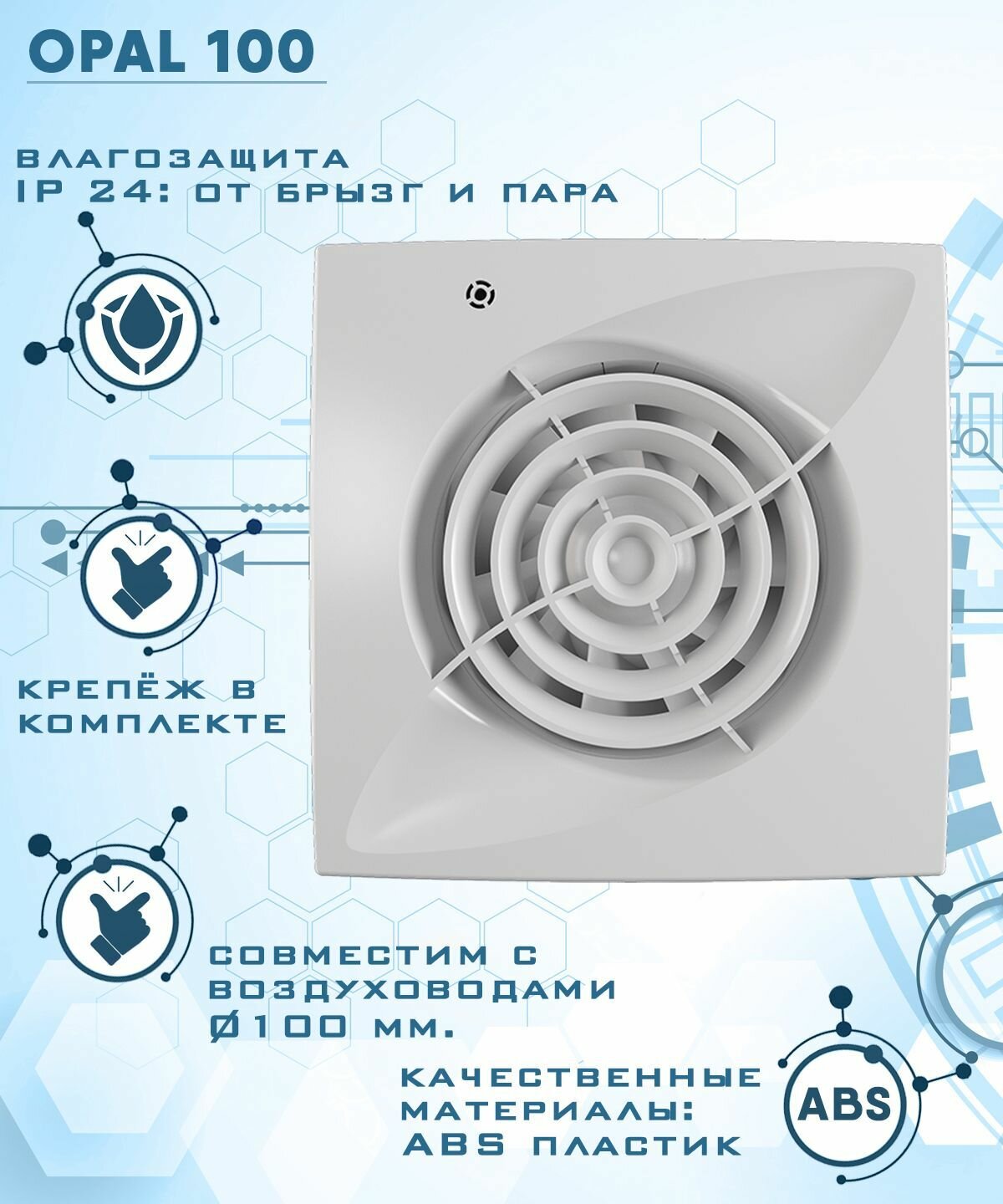 Вытяжные вентиляторы OPAL 100 вентилятор вытяжной малошумный 25 Дб энергоэффективный 8 Вт на шарикоподшипниках с обратным клапаном диаметр 100 мм ZERNBERG