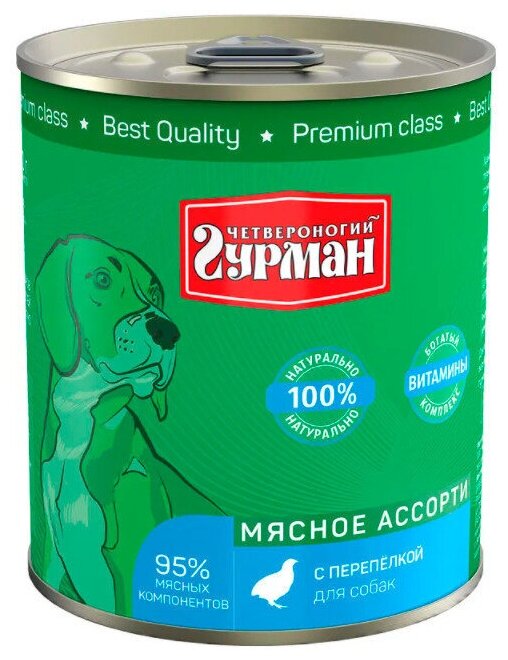 Влажный корм для собак Четвероногий Гурман Мясное ассорти, беззерновой, перепелка 1 уп. х 1 шт. х 340 г