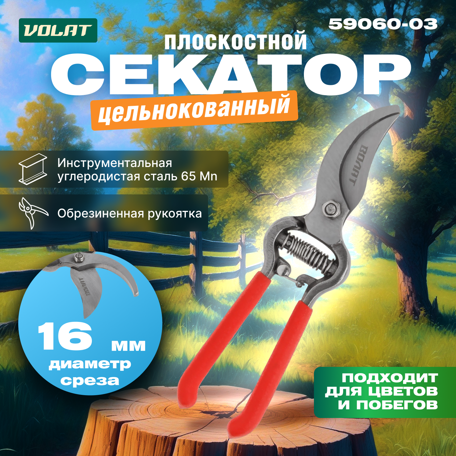 Секатор садовый плоскостной ручной волат 59060-01, длина 21 см