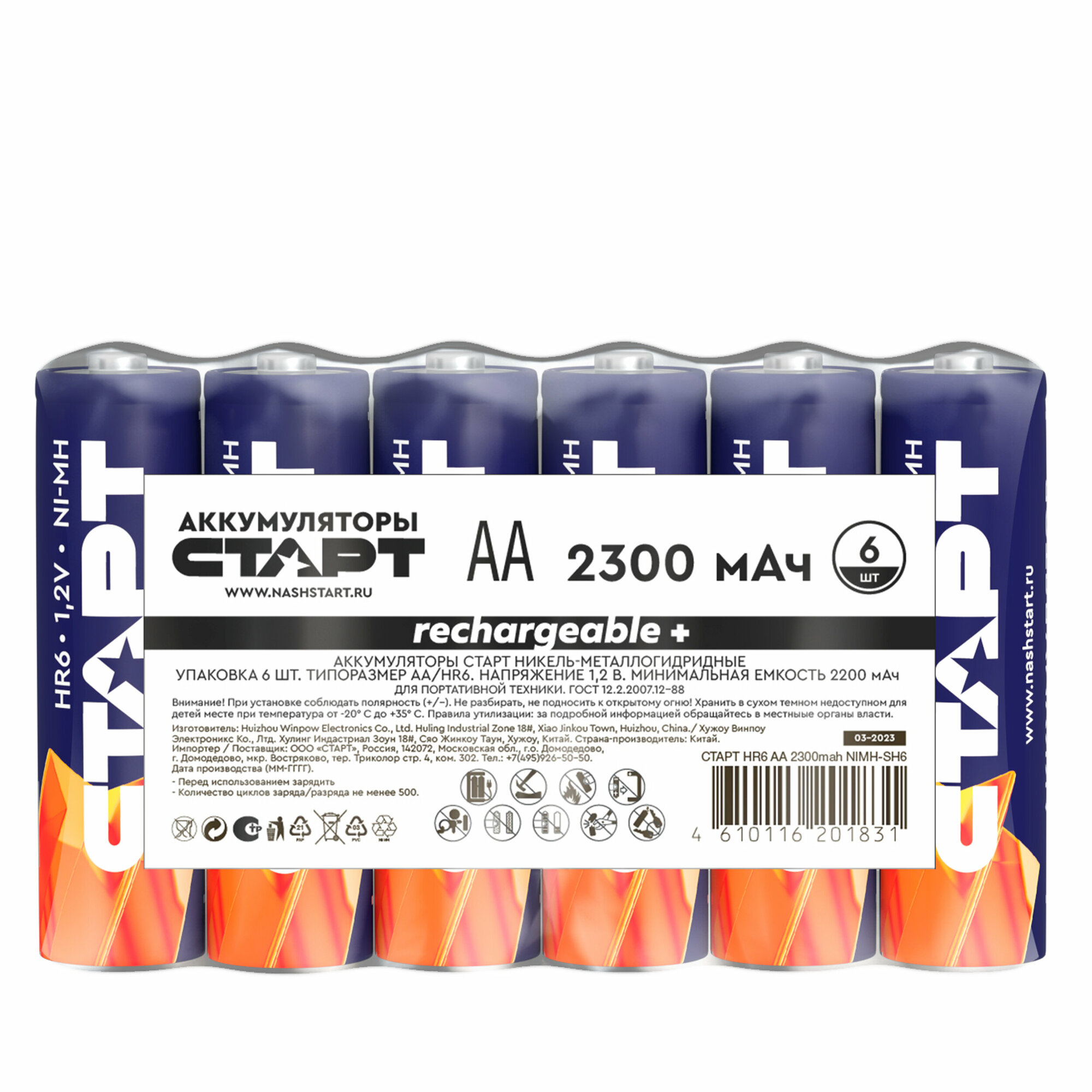 Аккумулятор / батарейка Аккумуляторная батарейка старт, типоразмер АА (HR6) 2300 мАч, комплект 6 шт.