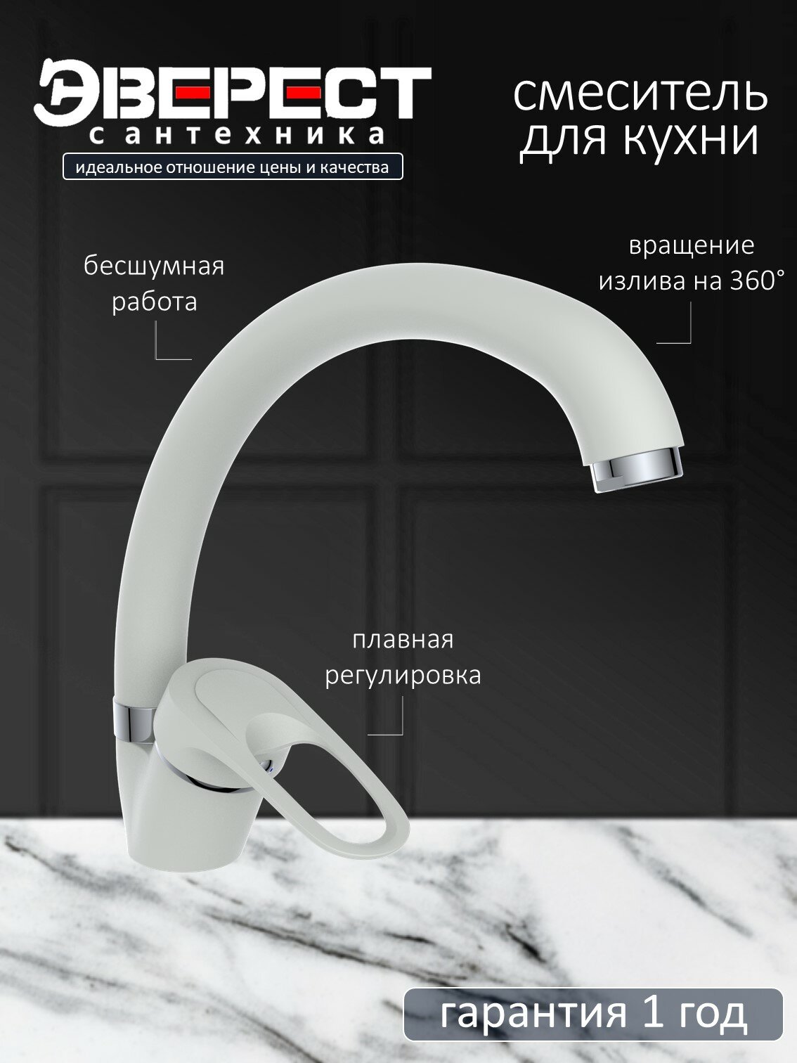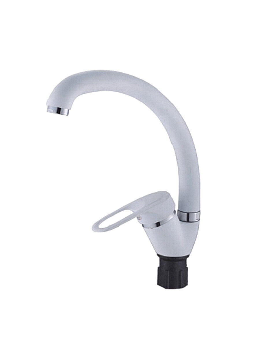 Смесители Смеситель на кухню Эверест B59-0257 с высоким изливом, картридж 40 мм, белый, крепление гайка