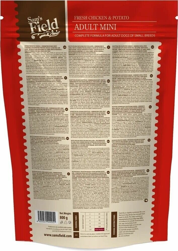 Корм для собак Сухой корм для собак мини пород Sam's Field ADULT MINI, из курицы с куриной печенью и картофелем, 800 г